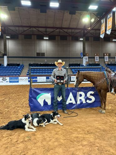 Layton Henry is the breeding manager for Hendricks Performance Horses in Tioga, Texas. His childhood was spent traveling to dog trials across the United States with his father working with Border Collies. At 19 years old, he decided to try his hand at working dogs and since then has had great success trialing his dogs on horseback and on foot. His calm, quiet demeanor and stone cold focus are perfect for training animals.